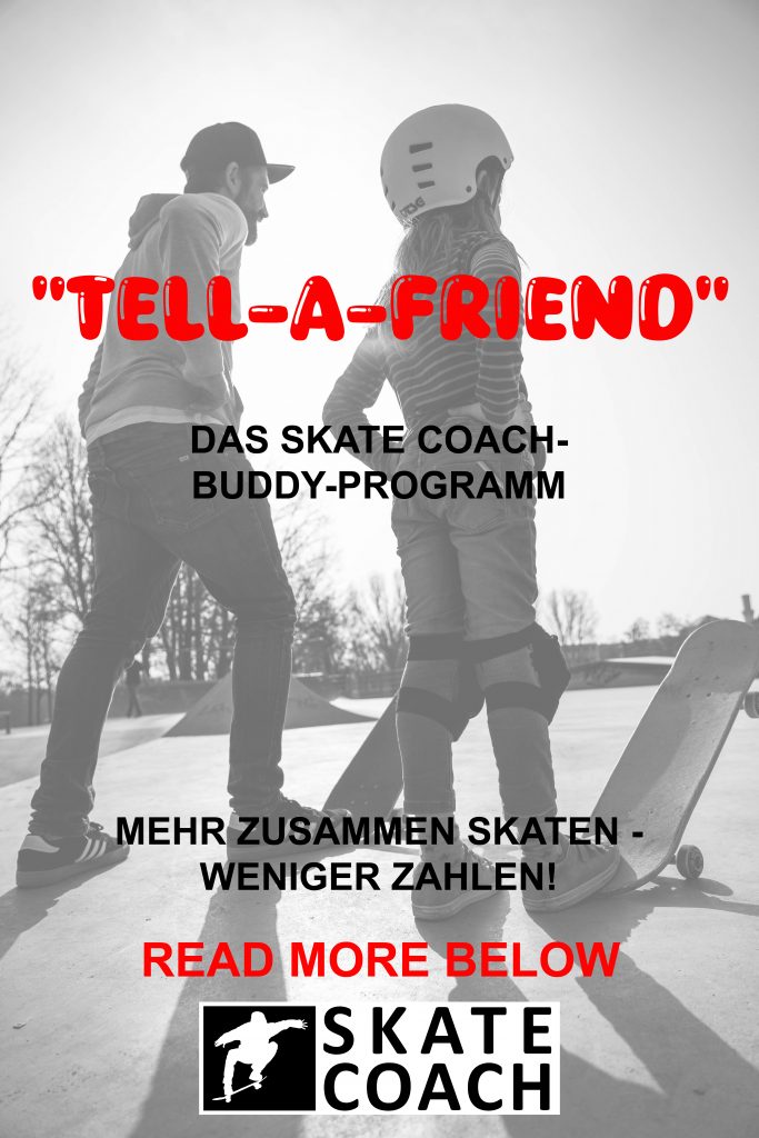 Skaten macht zusammen einfach mehr Spaß. Und genau deshalb gibt’s bei SkateCoach jetzt unser TELL-A-FRIEND Programm:
